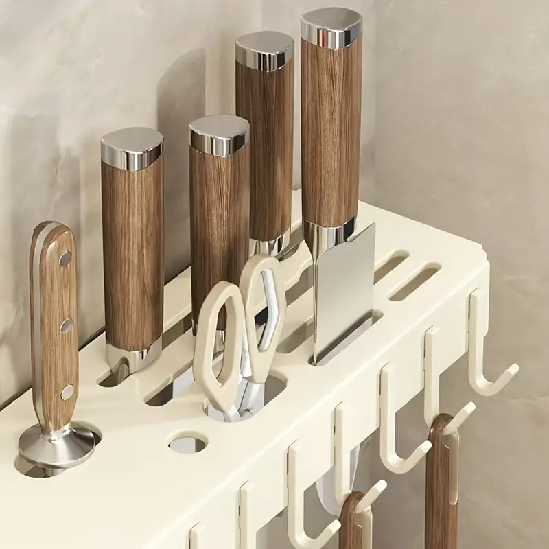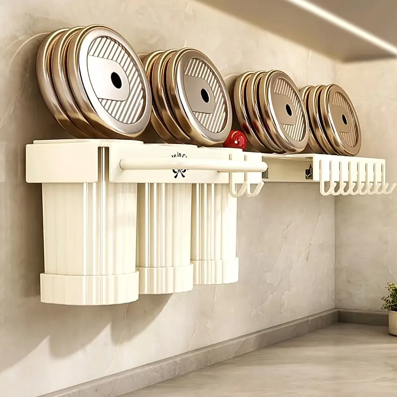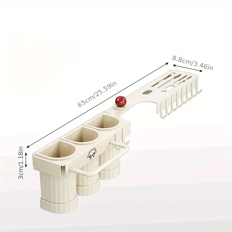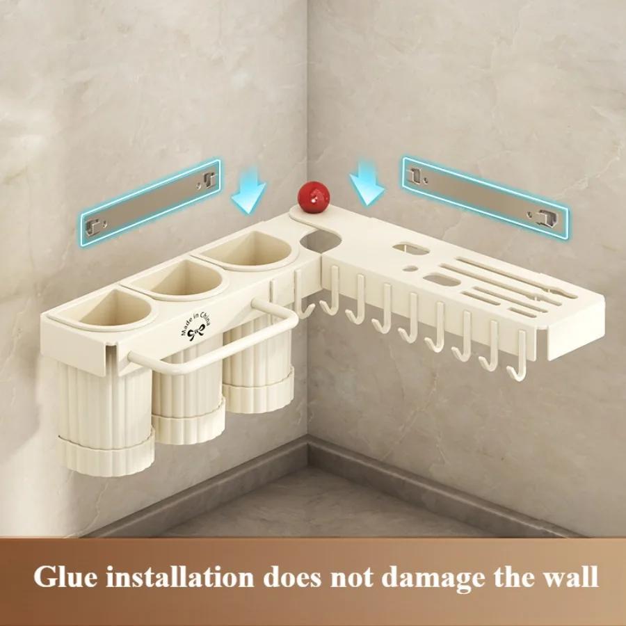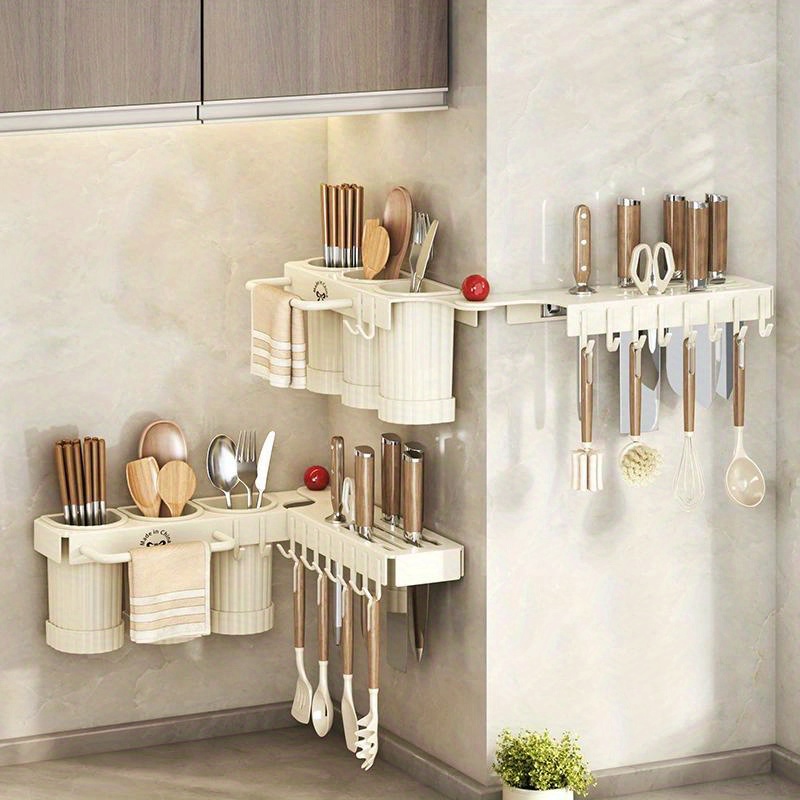 1pc Upgraded Foldable Corner Kitchen Utensil Holder, Carbon Steel Wall-Mounted No-Drill Cutlery and Spoon Organizer with Drain Storage Cups and Towel Bar, Space-Saving Design for Knives, Spoons, Forks, and Towels, Cooking Utensils