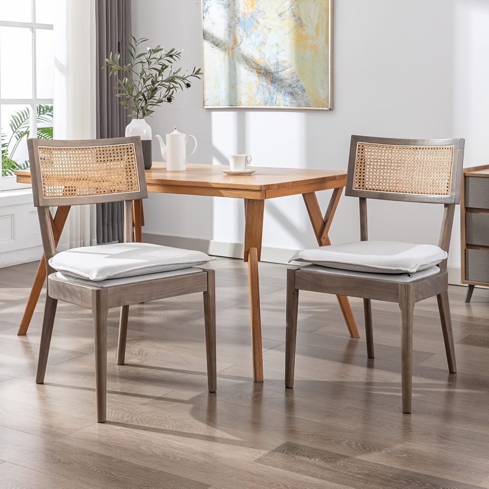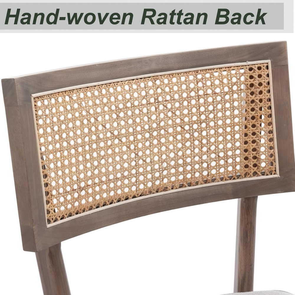 2pcs Farmhouse Dining Chair Set, Rattan Backrest, Linen Seat, Armless, Kitchen Dining Chair With Detachable Soft Cushion, Weighing 280 Pounds